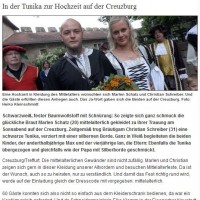 Am 13. August gaben sich Marlen und Christian das „Ja-Wort“ auf der Burgruine Brandenburg. An den Ufern der Werra schlossen beide den Bund fürs Leben. Nach alter heidnischer Tradition und nach altem Brauch und Sitte geschah dies durch ein Handfasting, dem Hand-Zusammenbinden der Brautleute. Das Besondere an dieser Zeremonie war, daß sie genau zum 50. Jahrestag des Mauerbaus im ehemaligen Grenzstreifen zwischen Thüringen und Hessen stattgefunden hat. Und so tanzten fröhlich die Heiden, wo früher Zaun und Stacheldraht das Land entzweiten.
